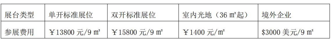 注 2:空地展位不带任何设施,由参展商自行设计装修或委托设计、装修。